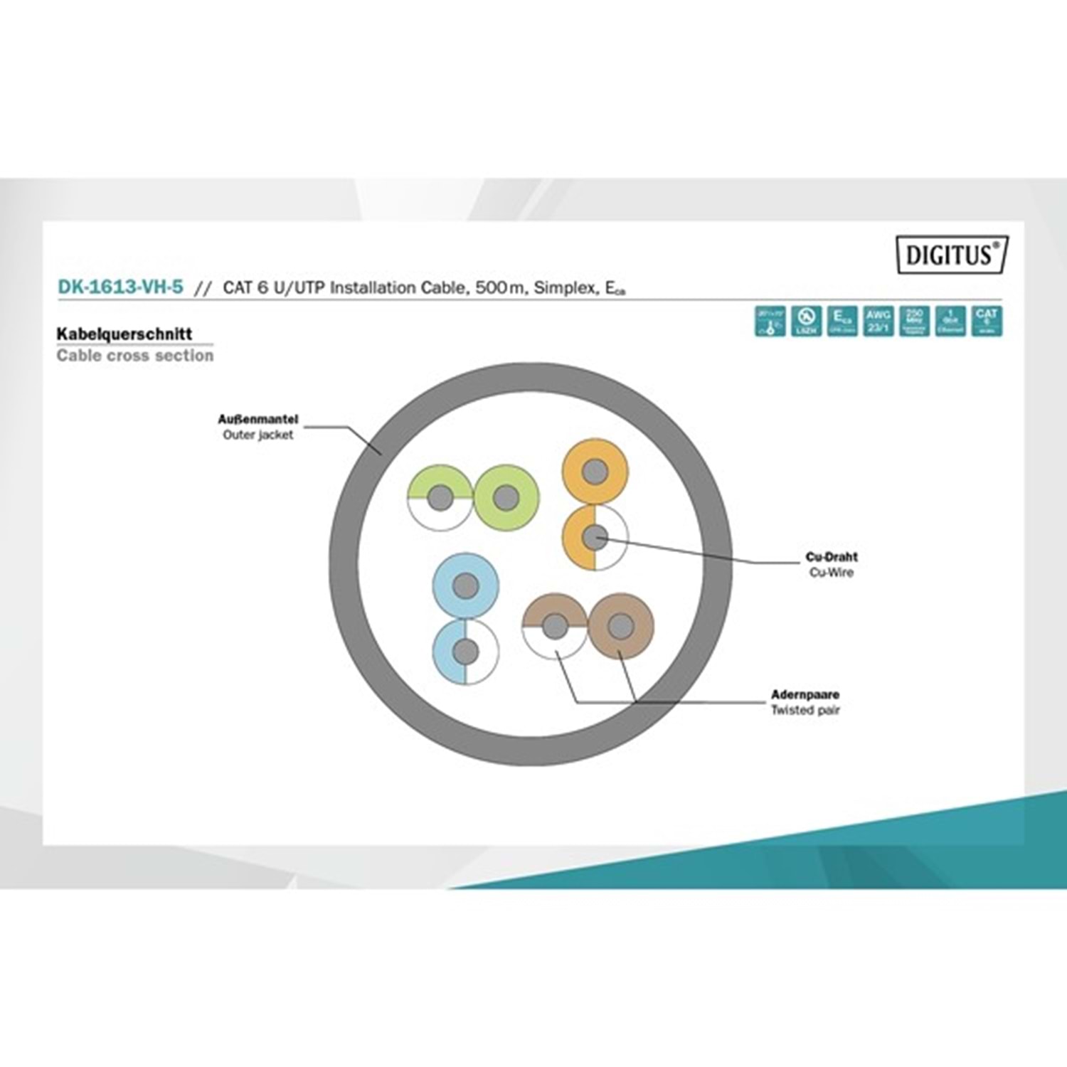 DIGITUS 500metre CAT6 Utp 23AWG Gri Makara Saf Bakır Kablo 0.50mm DK-1613-VH-5-GR