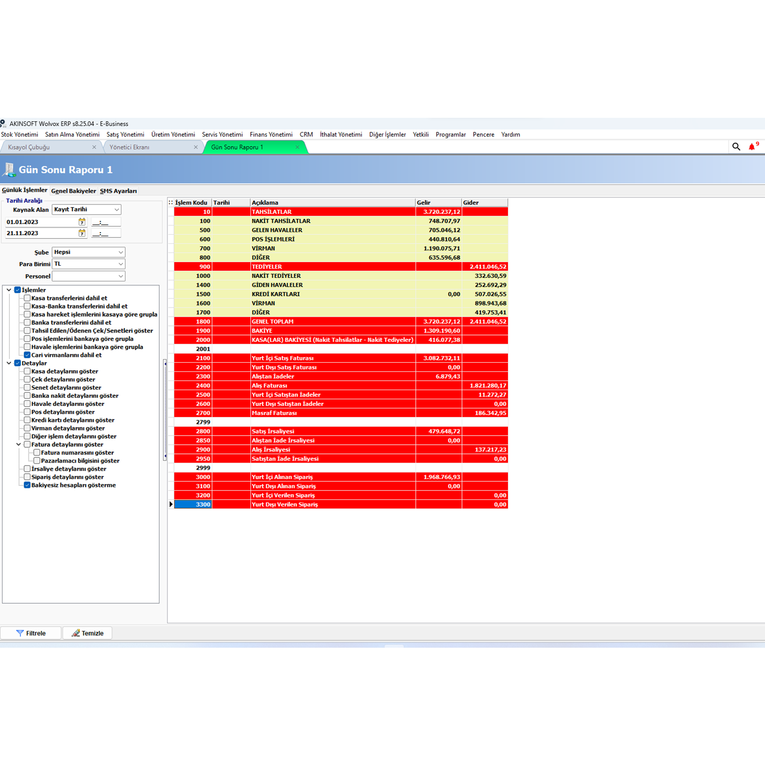 • Termindeki ürünlere ait raporlar.